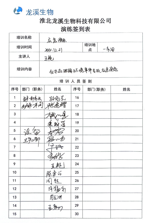 淮北龙溪生物科技有限公司化学品泄漏突发环境事件应急演练 点击下载查看